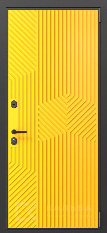 Фото №2 «Входная дверь жёлтая рельефная геометрия внутри белая панель №201»