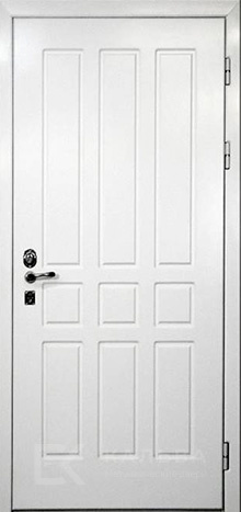 Фото №2 «Входная дверь белая классика с шоколадной панелью геометрия №548»