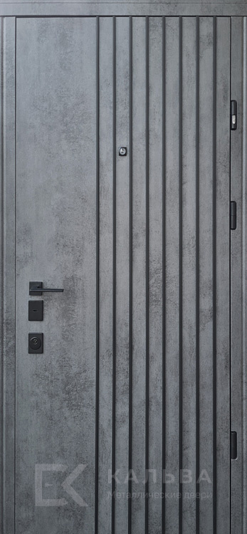 Фото №2 «Железная дверь лофт бетон серый с рейками и тёмным шпоном №79»